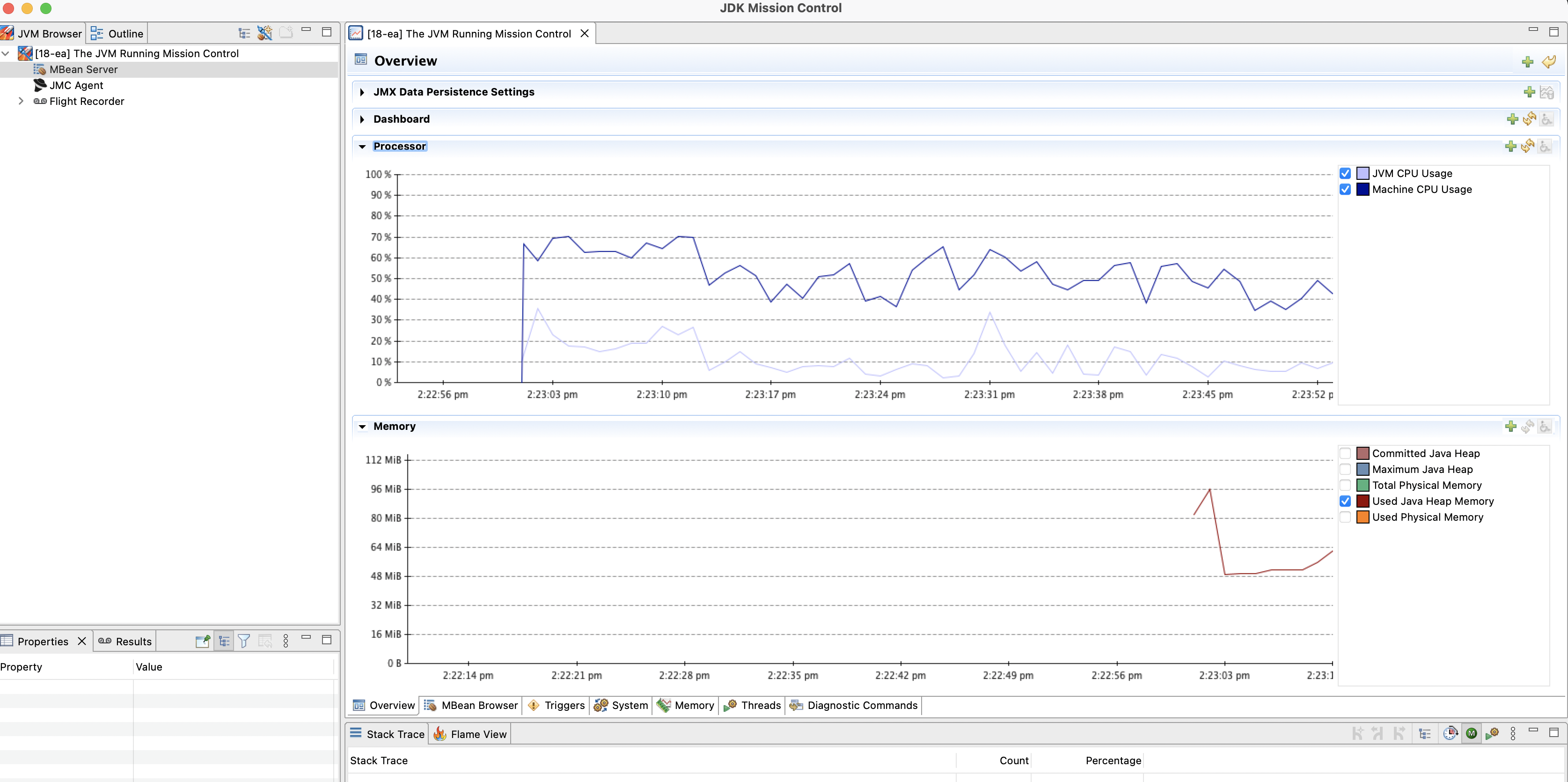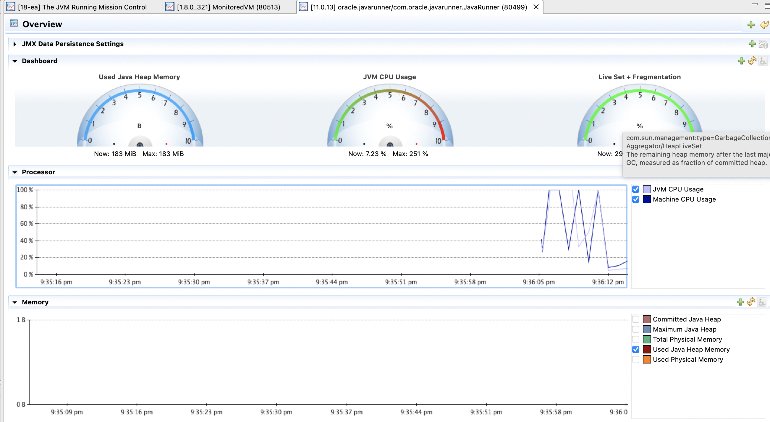 Real-time rendering of graphs in the JMX console does not happen automatically. It often requires a manual intervention such as a mouse click on the graph. Please see the Memory graph below.